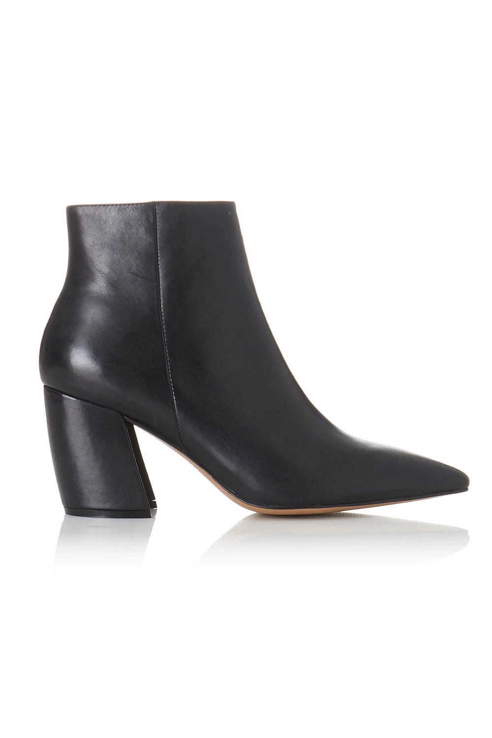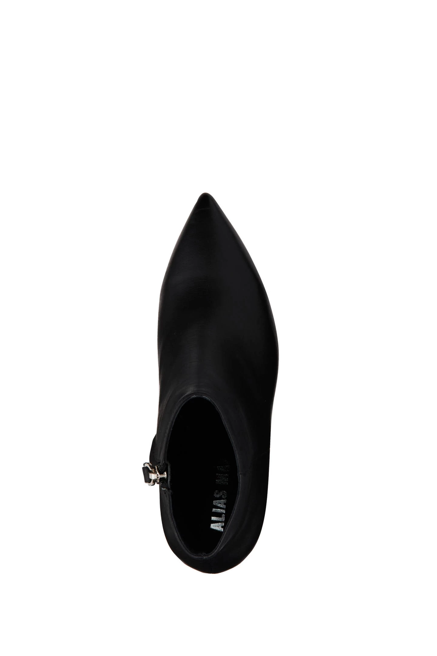 Akaara boots by Alias Mae in black. Set on a curved block heel, these boots are crafted from genuine smooth leather and shaped with a sharp pointed toe.