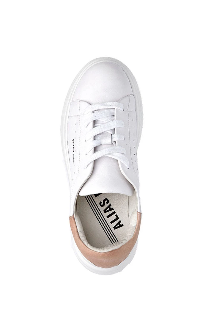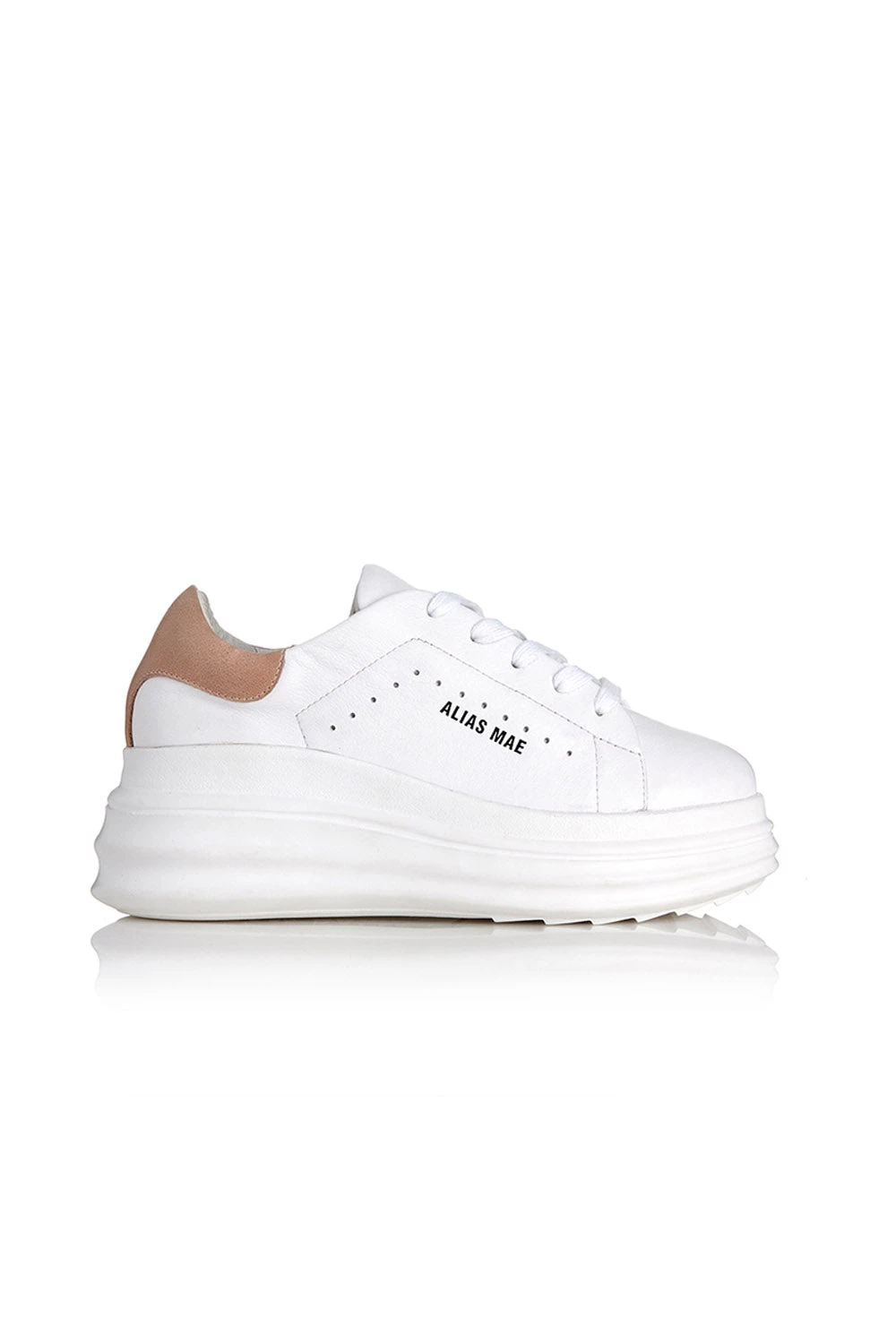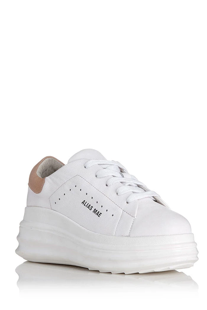 Arlo by Alias Mae in blush. Refresh your sneaker edit with the Arlo pair by Alias Mae, boasting perforated details and a statement wedge heel.