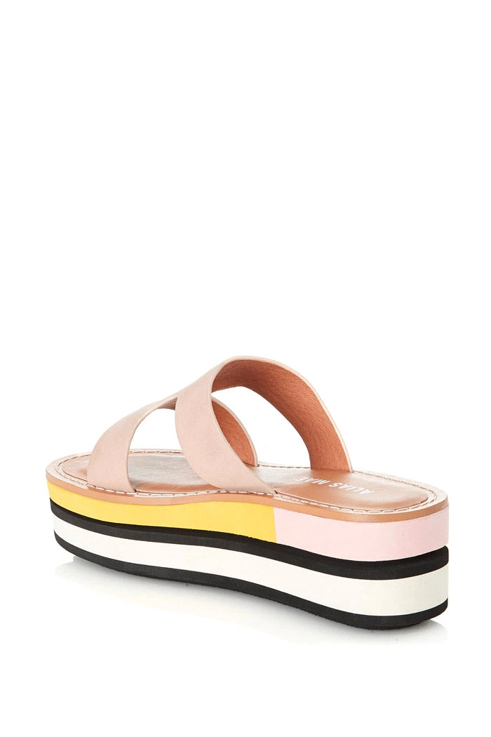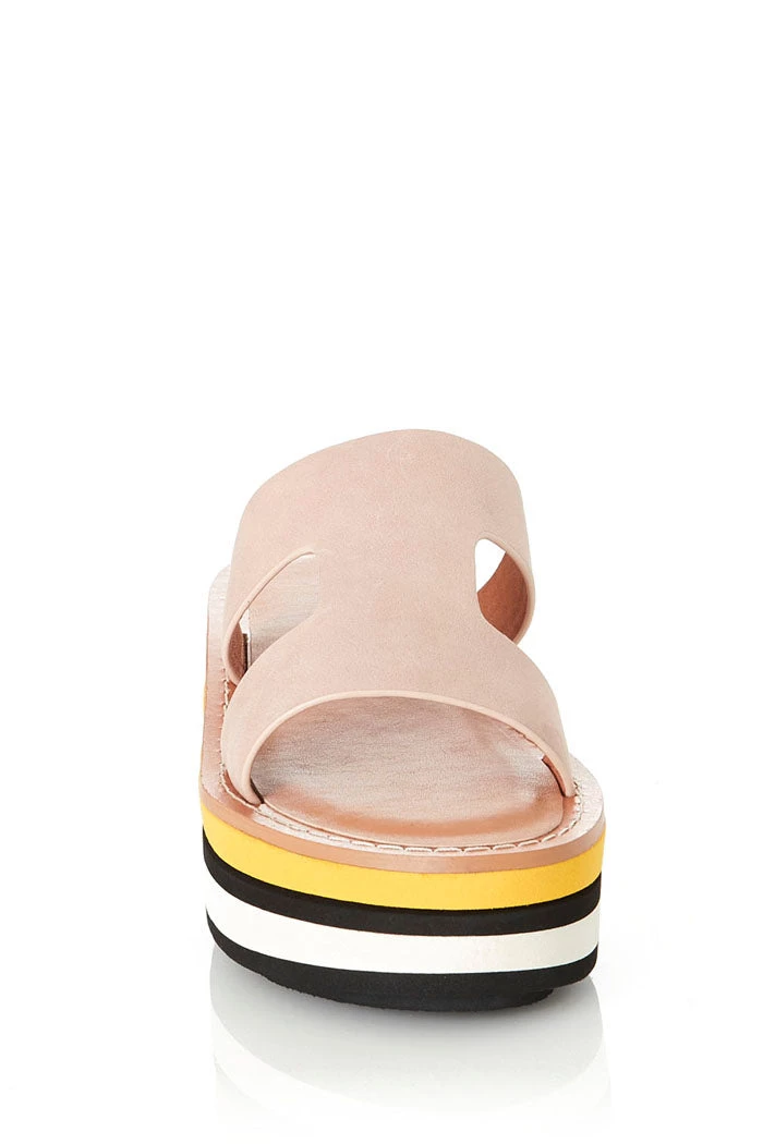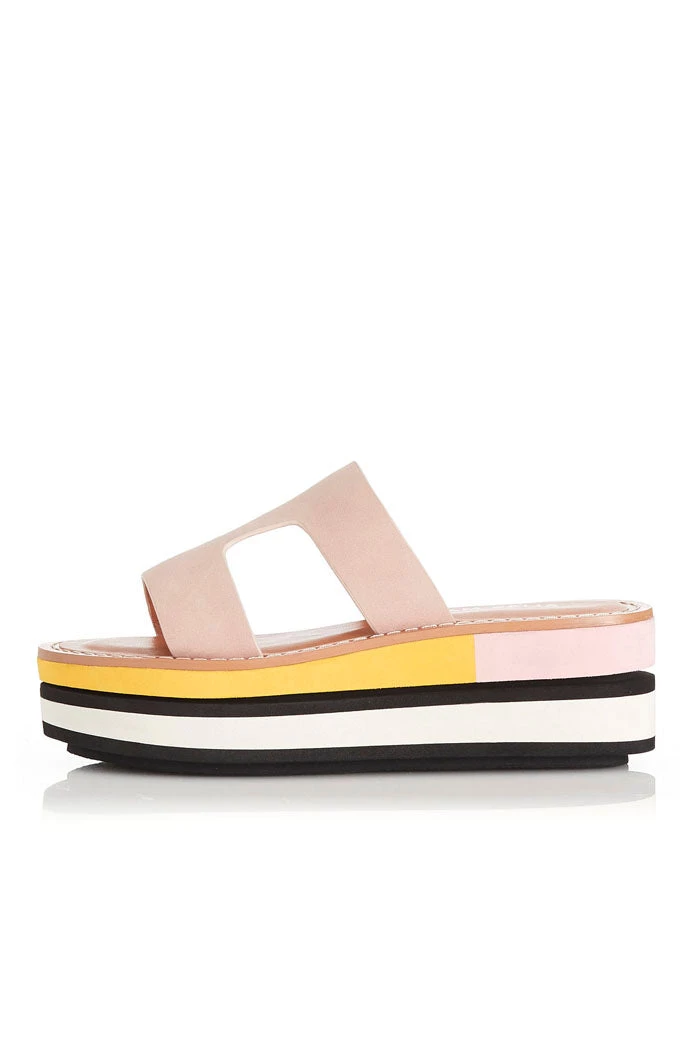 – Beige upper; panelled to platform with yellow, pink and white