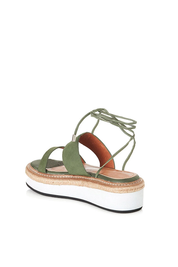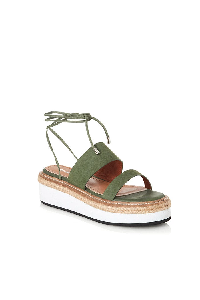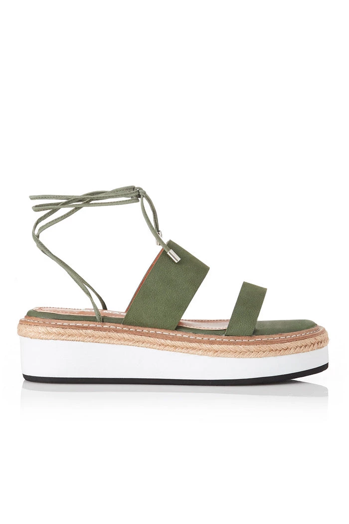 Niva by Alias Mae in moss. The perfect summer partner, this casual chic flatform will elevate any outfit.
