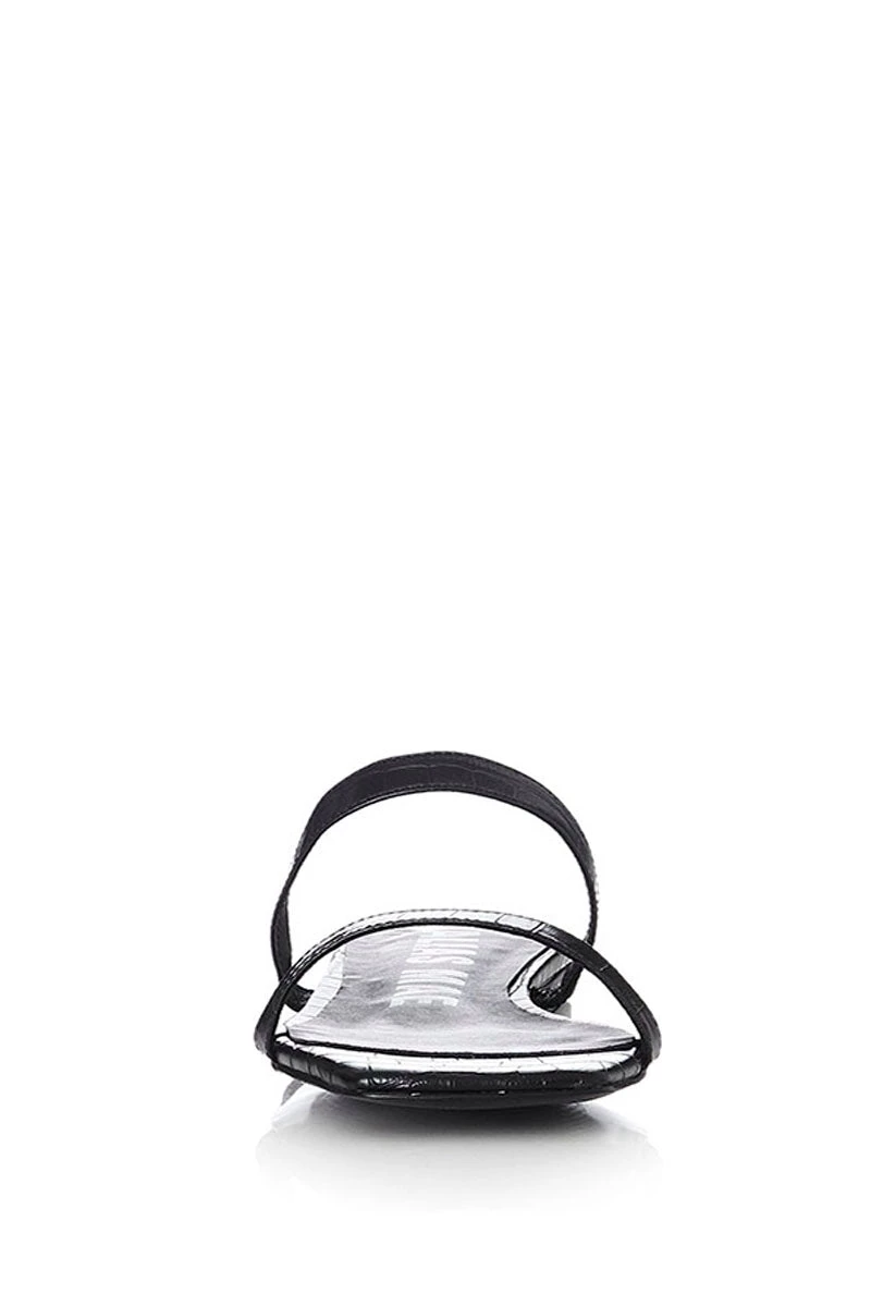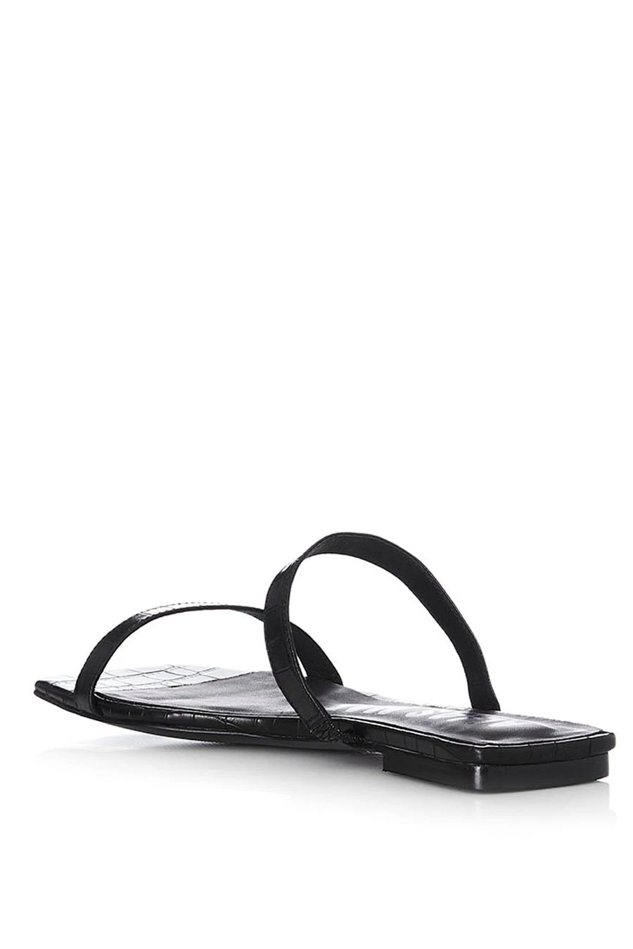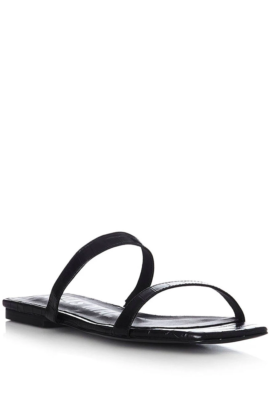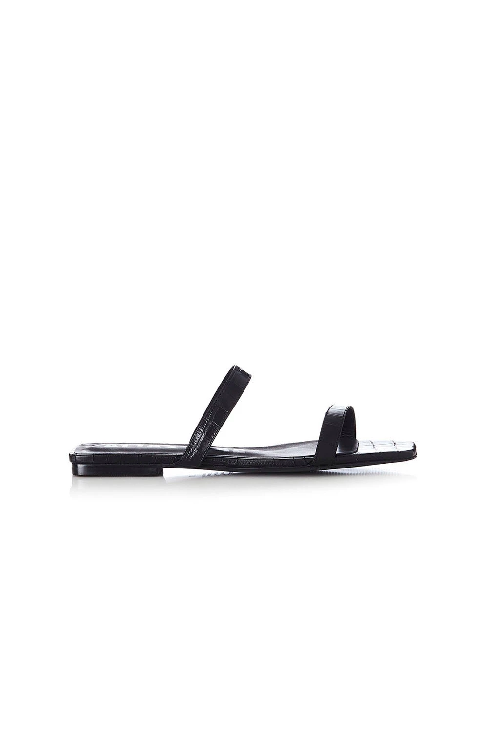 Prim croc leather flat side on sandals by Alias Mae in black croc