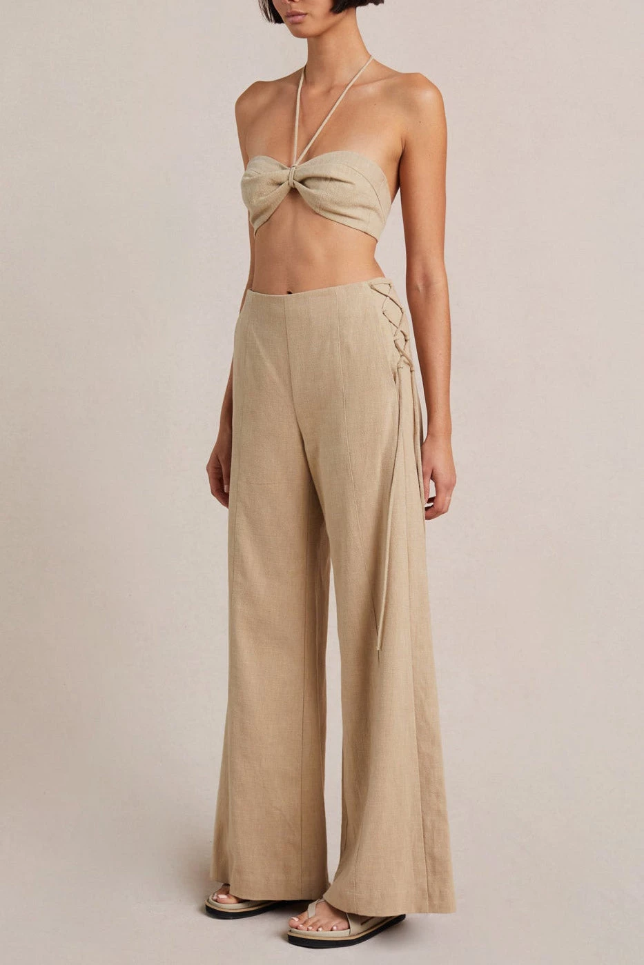 The Monty Pant are a wardrobe staple, they sit high on the waist before falling into a relaxed and comfy wide leg silhouette. The Pants are cut from a cotton, ramie blend and feature side seam ties, back jet pockets and a faced waistband. Styled with the Monty Top available here.