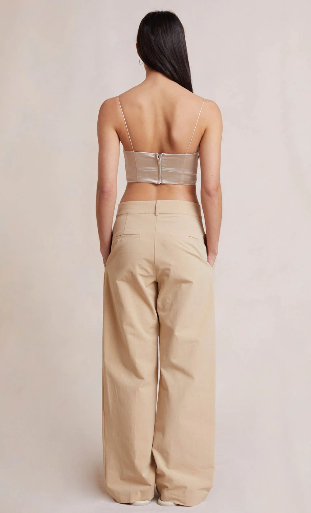 FIT: designed to be fitted in a cropped silhouette. Top is accessed by a back zip closure, not bra friendly. Satin fabric offers some stretch to the fit.