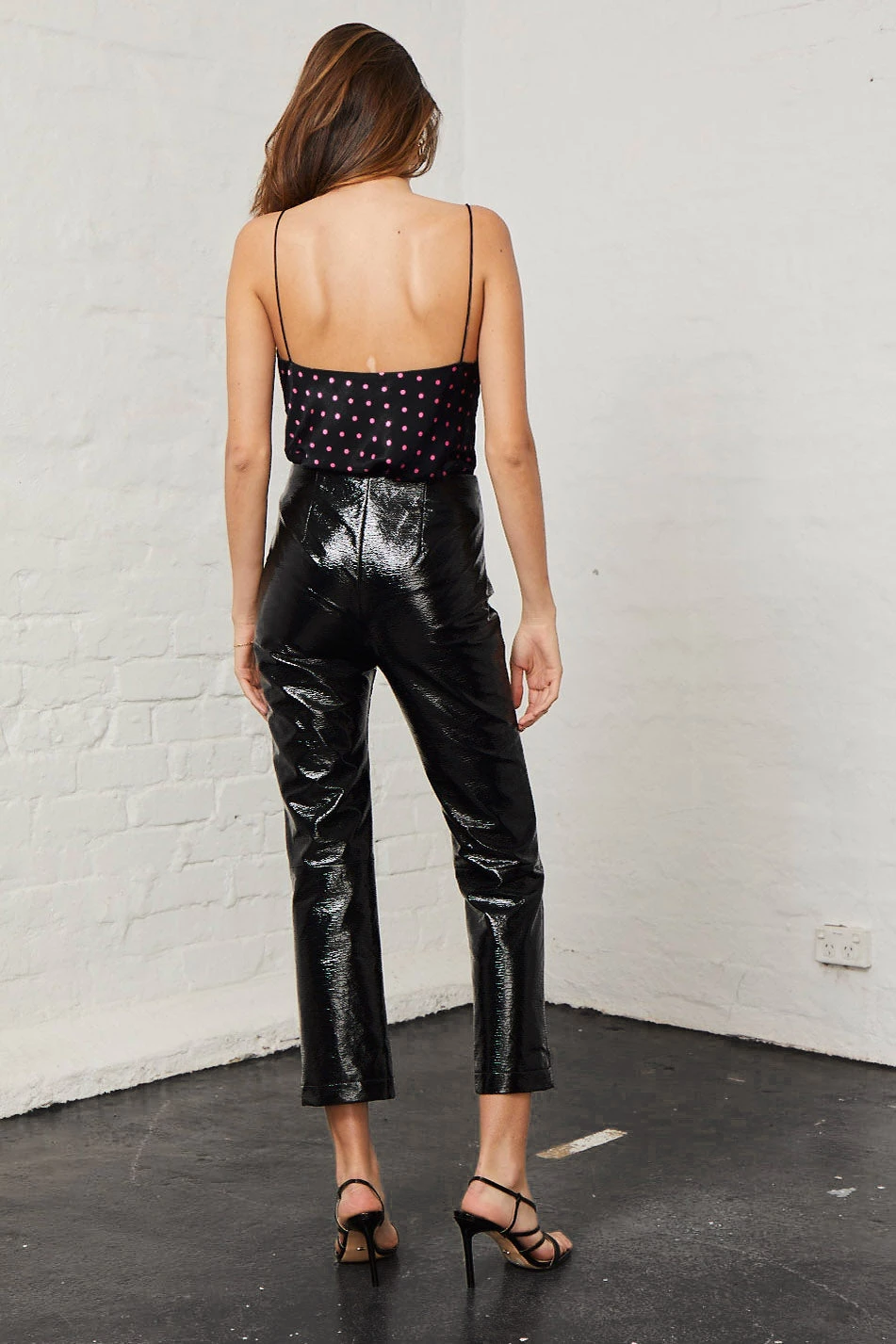 Kylie Top by Bec & Bridge. Pink dot printed viscose scoop neck cami.
