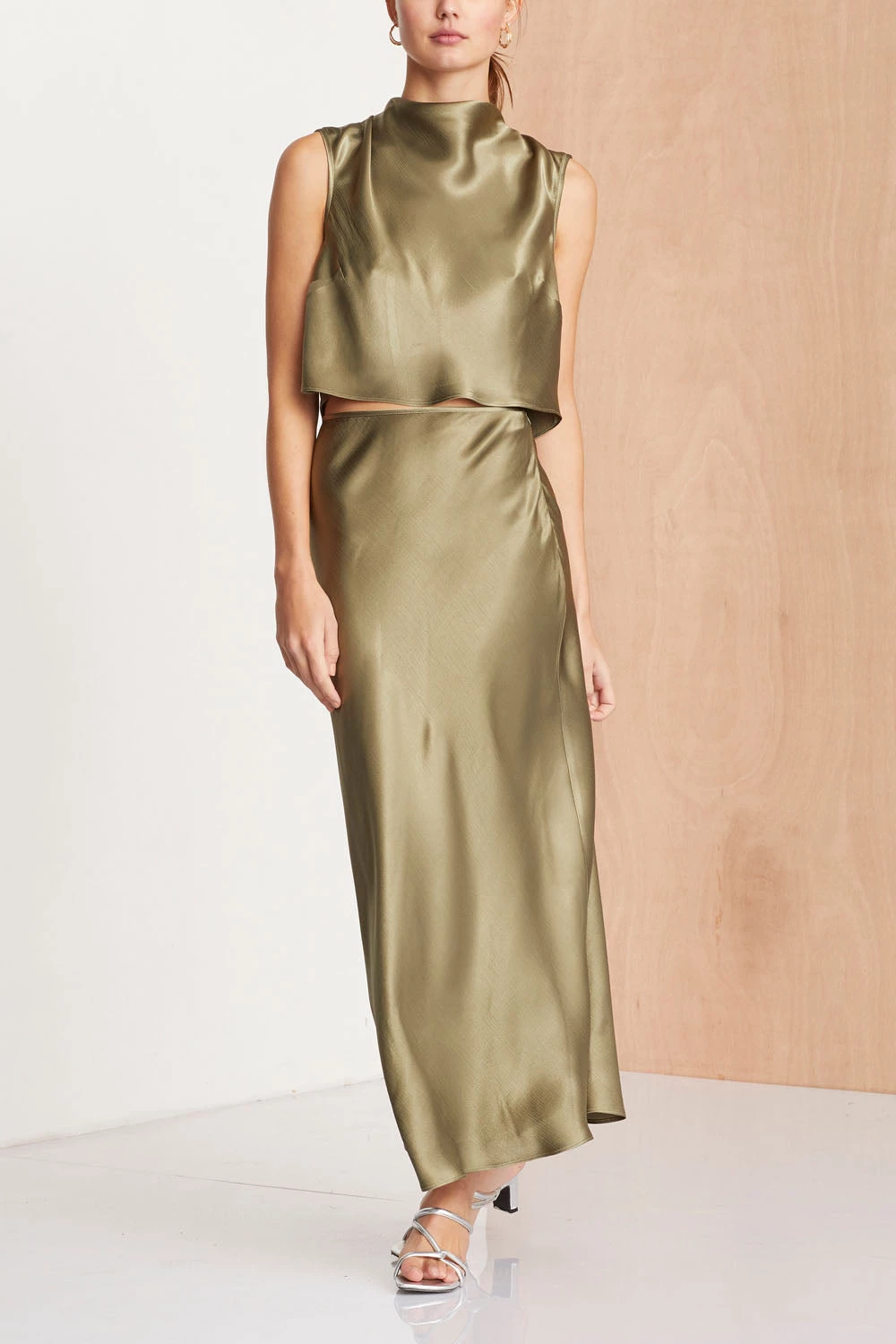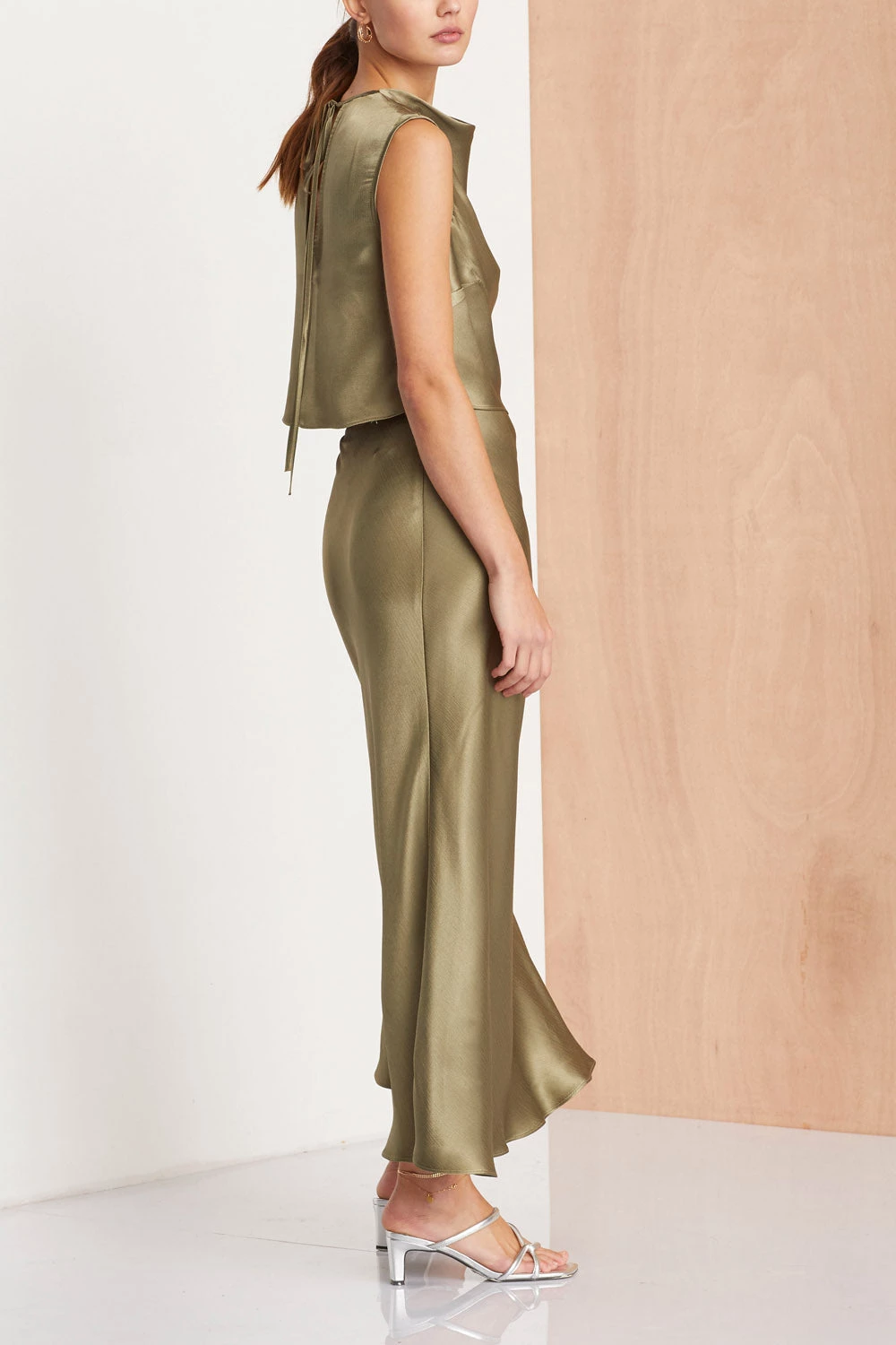 Midnight Dance Top in sage. Bias cut cowl top with keyhole back.