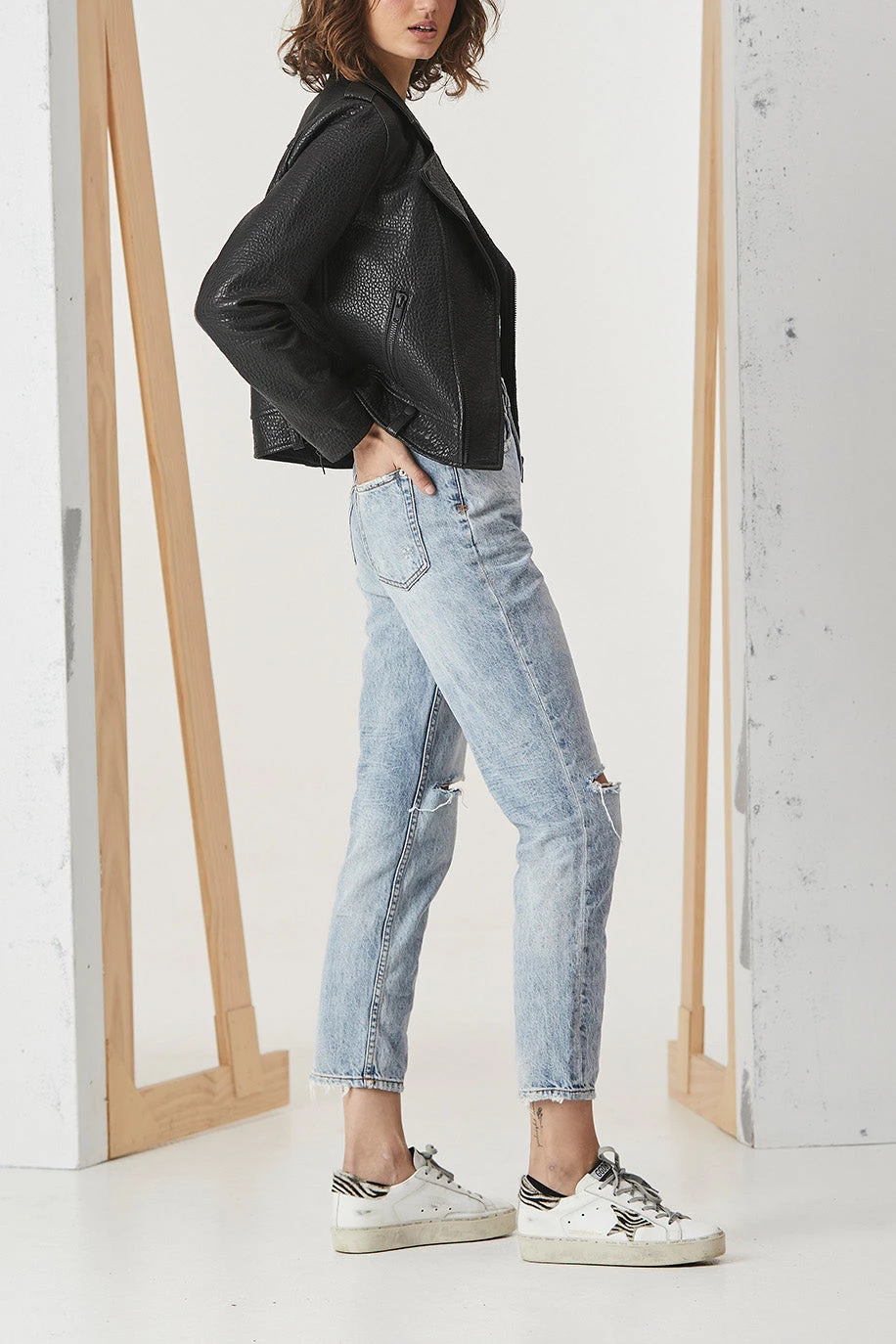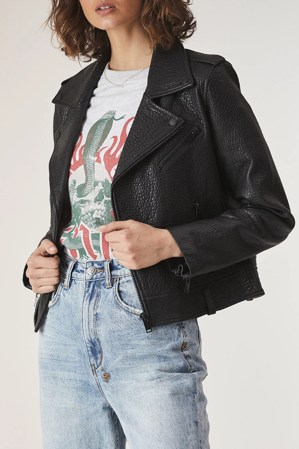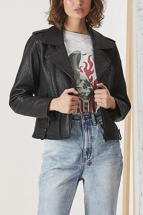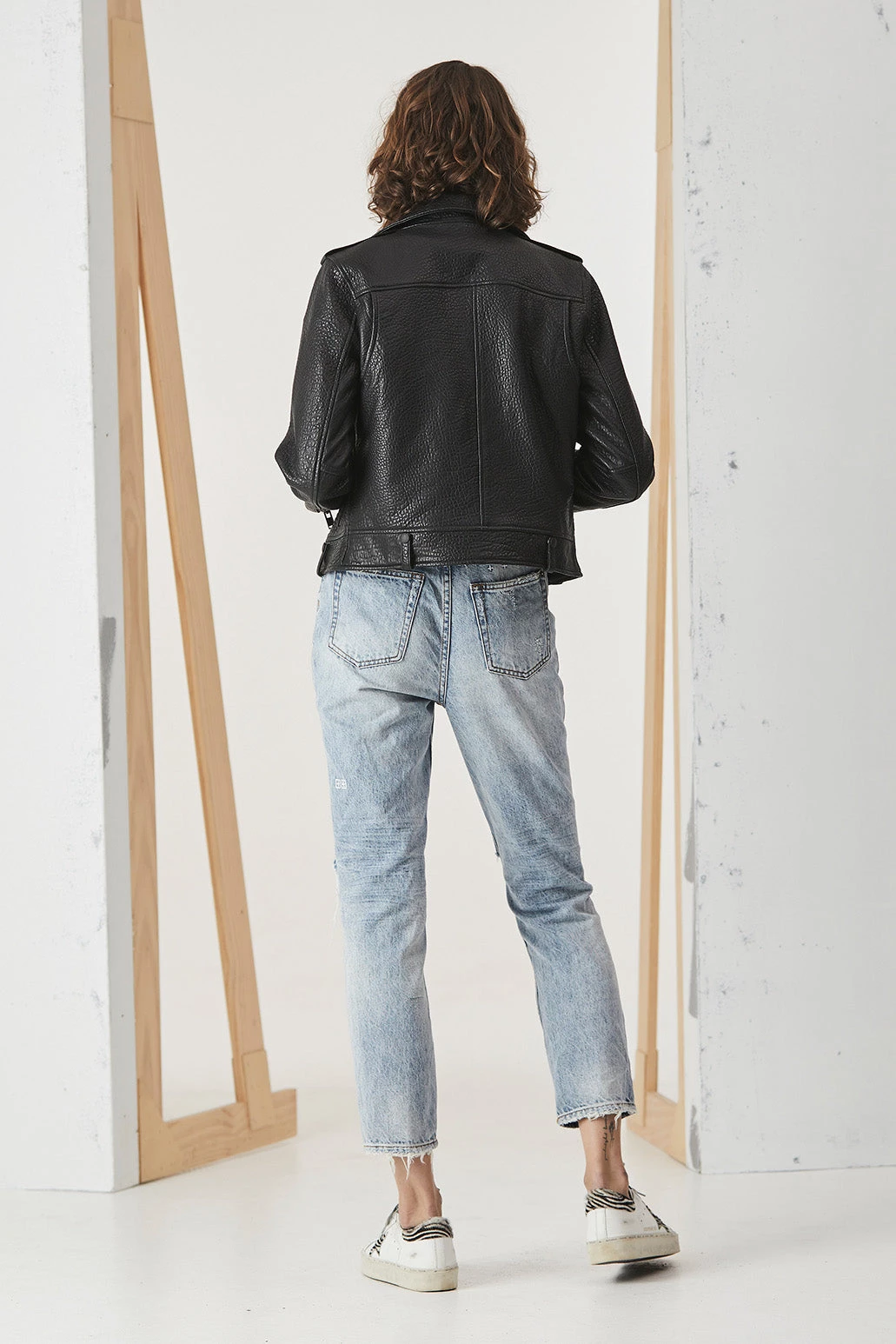 The Minimalist Biker Jacket is a timeless investment you’ll treasure forever. This piece is crafted from New Zealand pebbled lamb leather and has an asymmetric zip fastening, zip open cuffs, snap collar and lapels, and back armhole gussets for easy movement. Layer it with your favourite denim and tee for the perfect weekend look.
