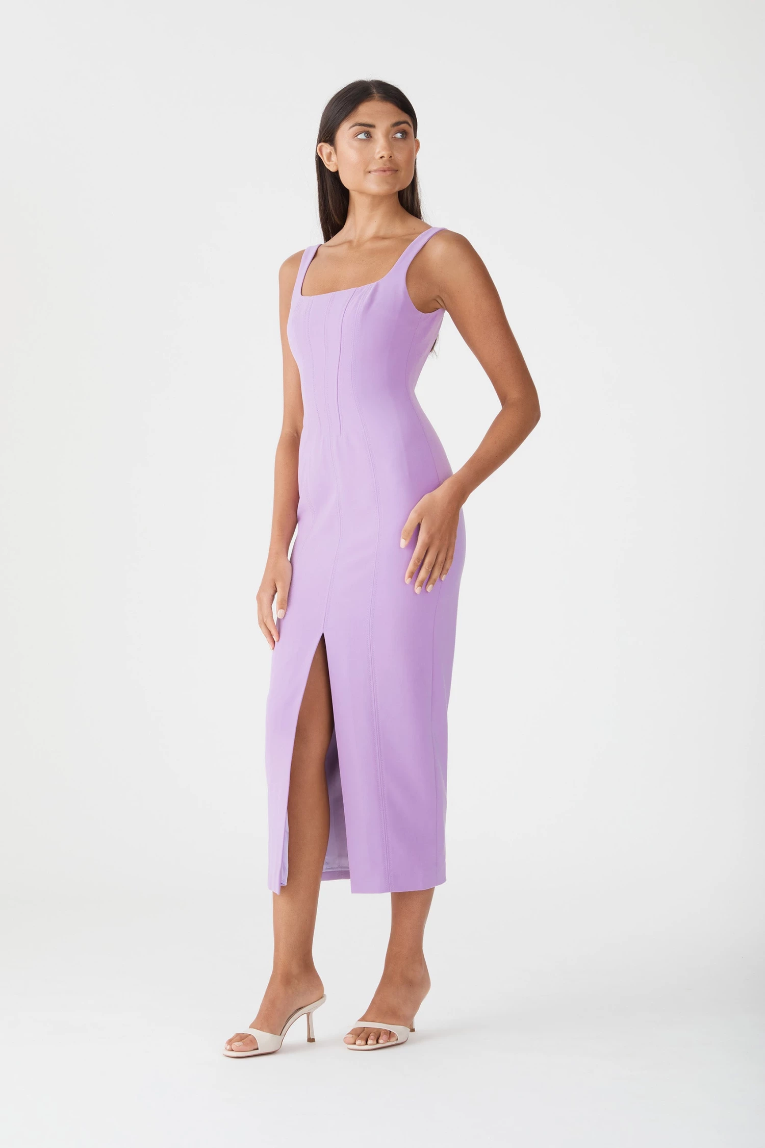 - Classic square neck midi dress