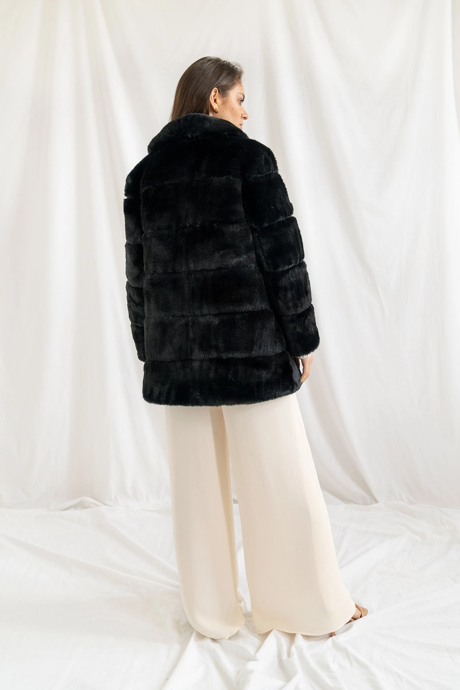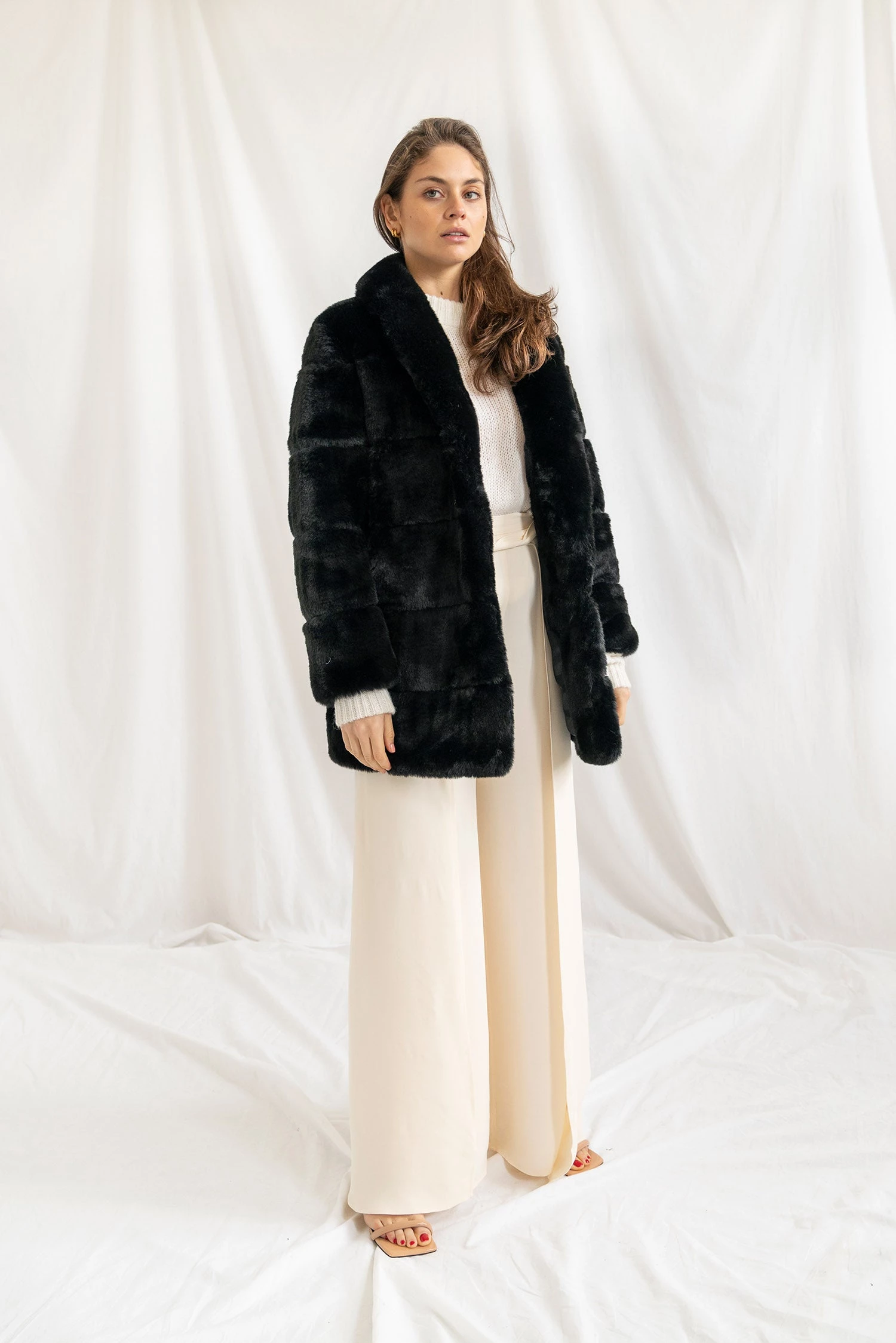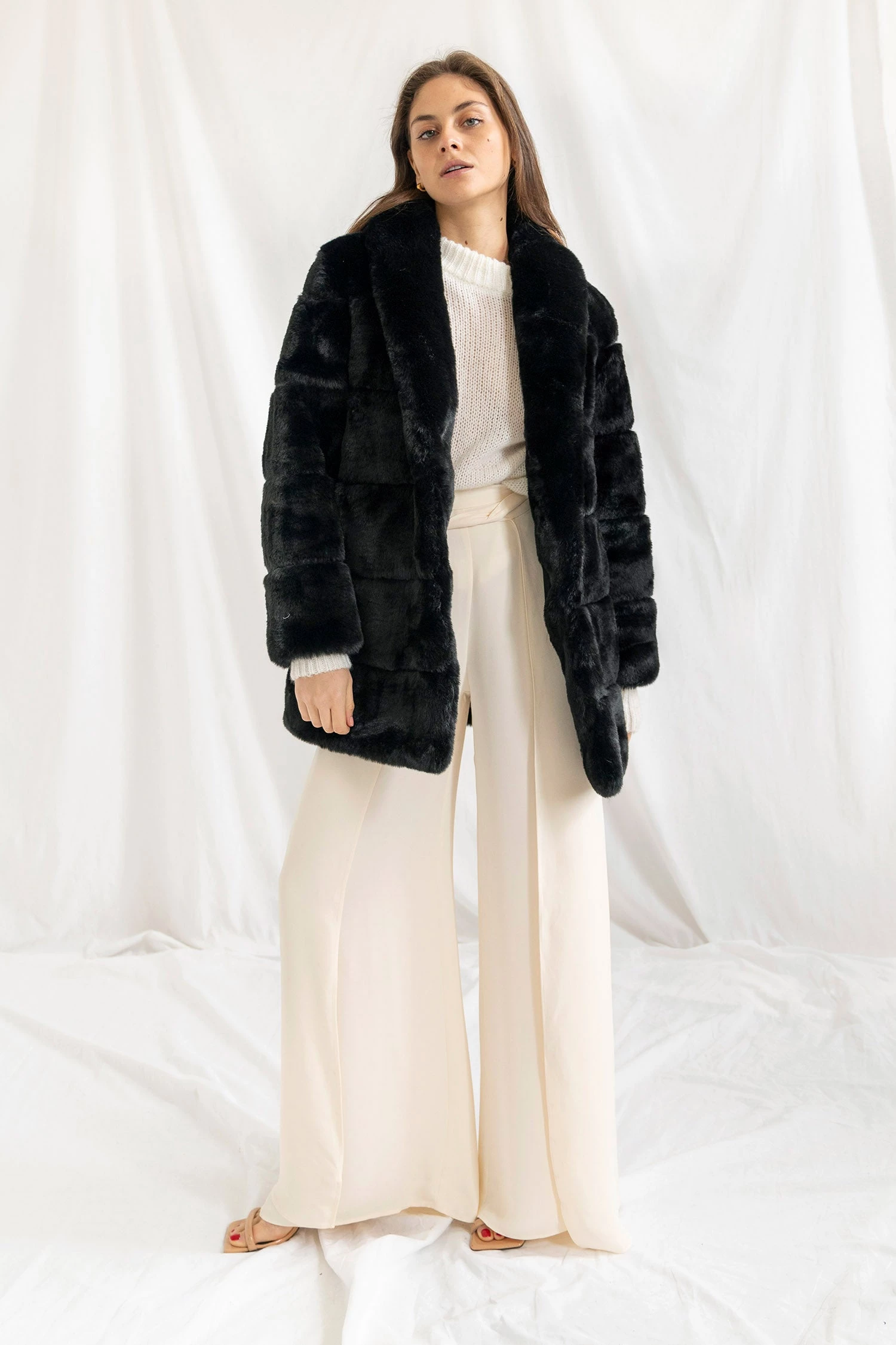 Fabrication: faux fur, satin lined.