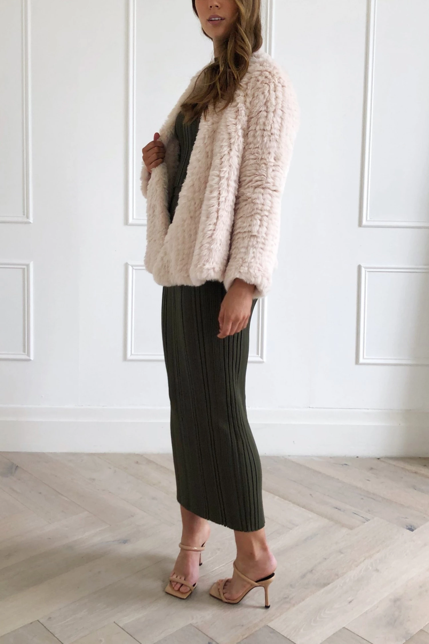 Beau Faux Fur Jacket Toffee. Open knitted faux fur jacket in Cream. Ultra soft to touch. Light weight yet, very warm. Relaxed fit. Slight waterfall front lapel. Pair with denim or dresses. Essential throw over for all year round.