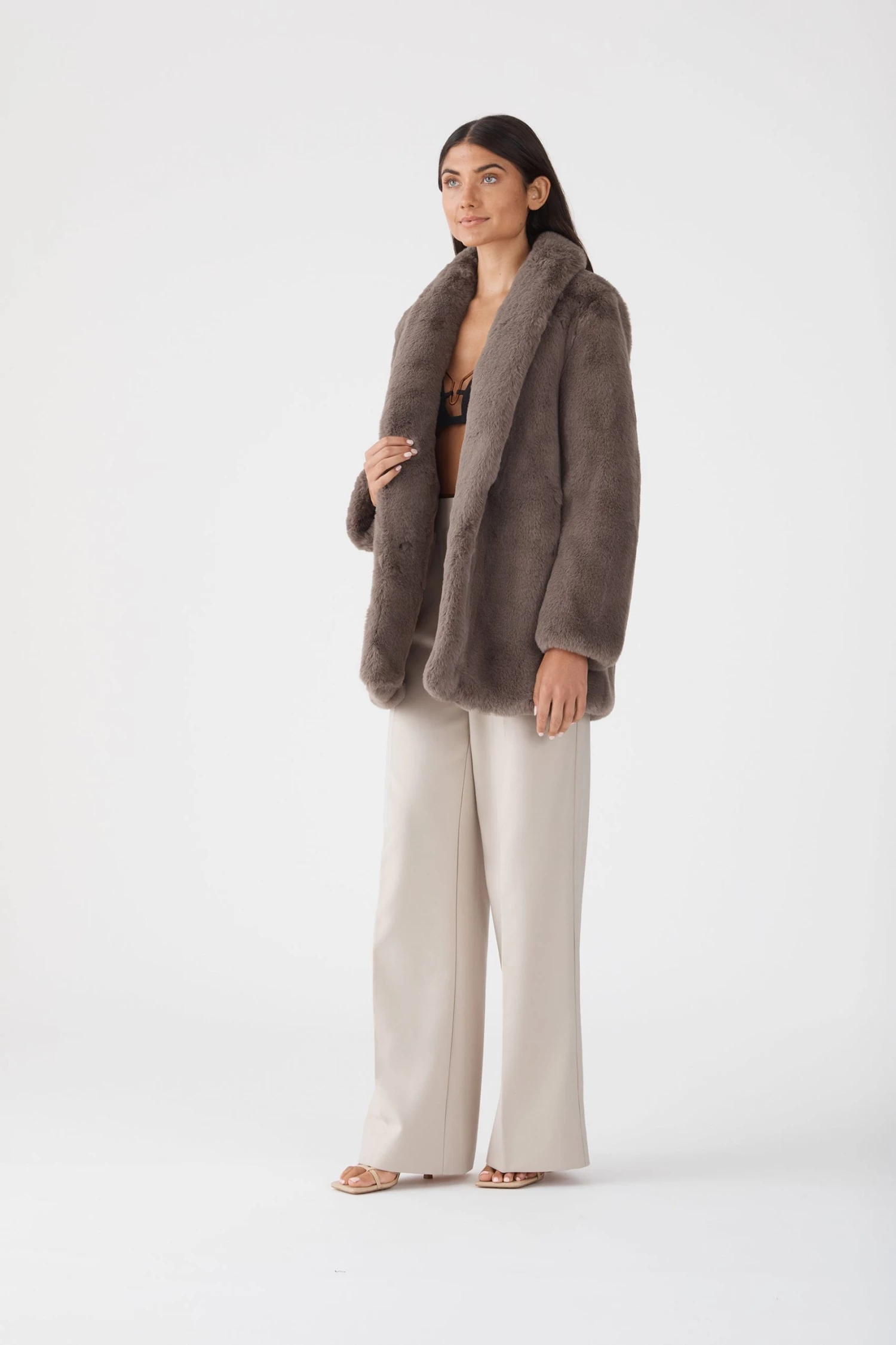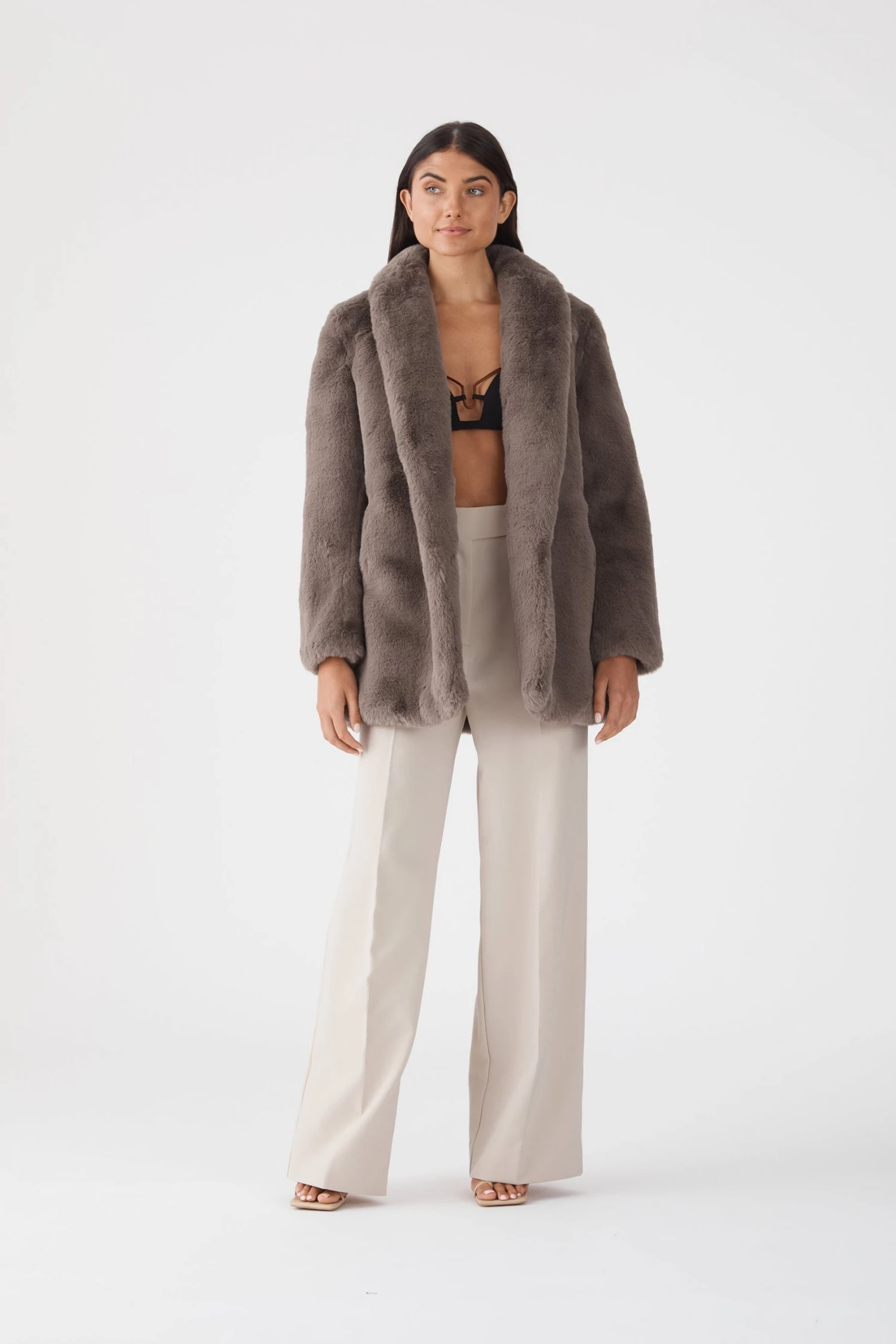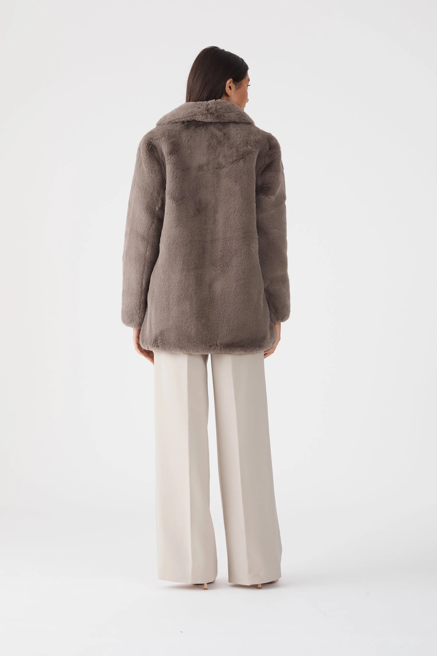 Crawford Faux Fur Jacket. Elegantly classic faux fur jacket with a butter soft and luxurious hand-feel. Features a slight lapel collar which can be worn up or down.