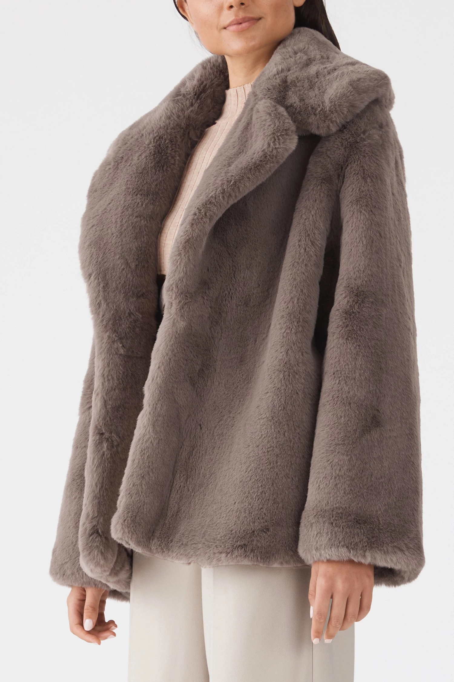 Refined & chic. Oversized faux fur jacket with a butter soft and luxurious hand-feel.
