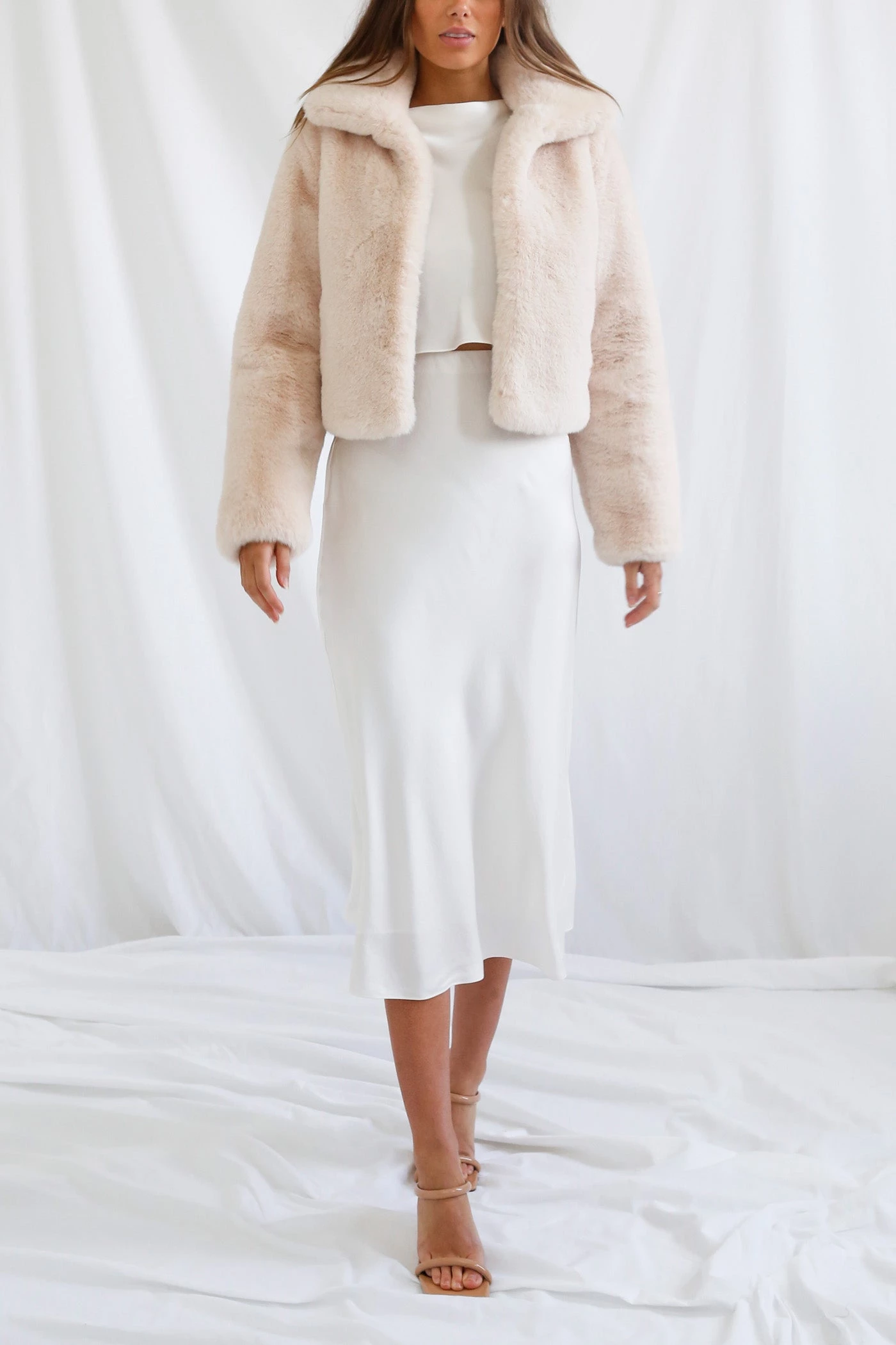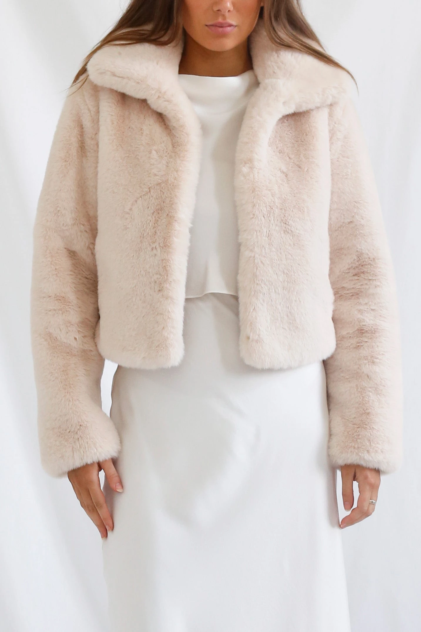 Slightly cropped biker jacket in faux fur. Butter soft and luxurious hand-feel. Features a slight lapel collar which can be worn up or down.