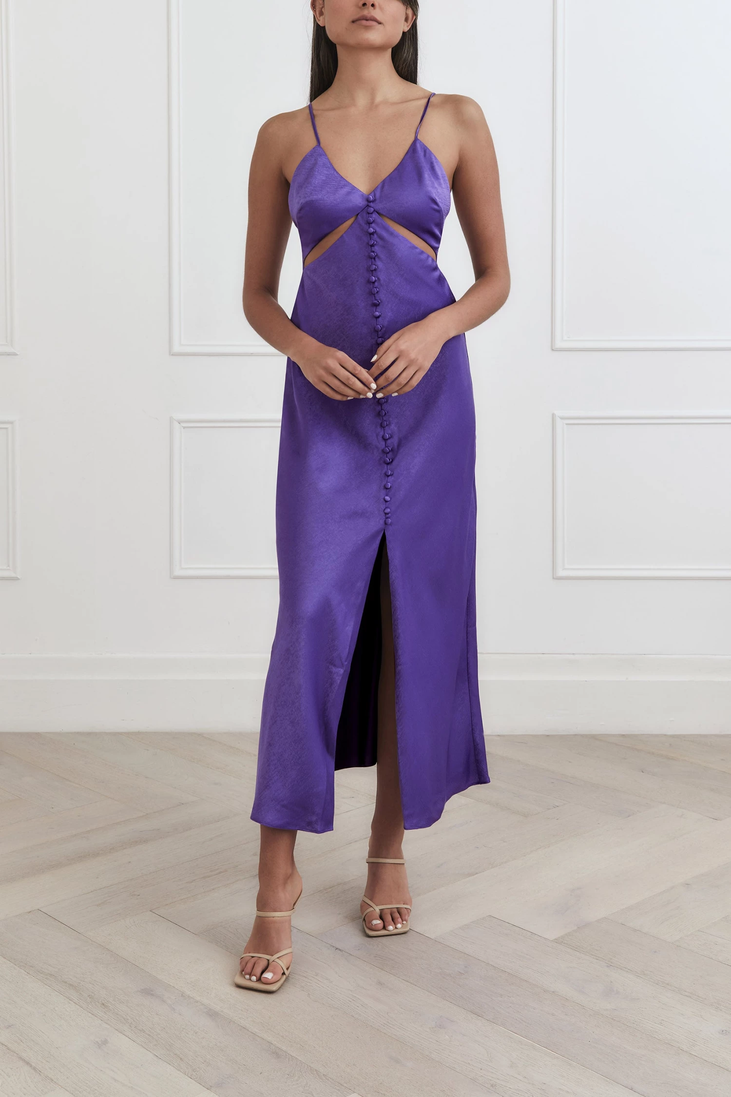- Features cut outs at under bust