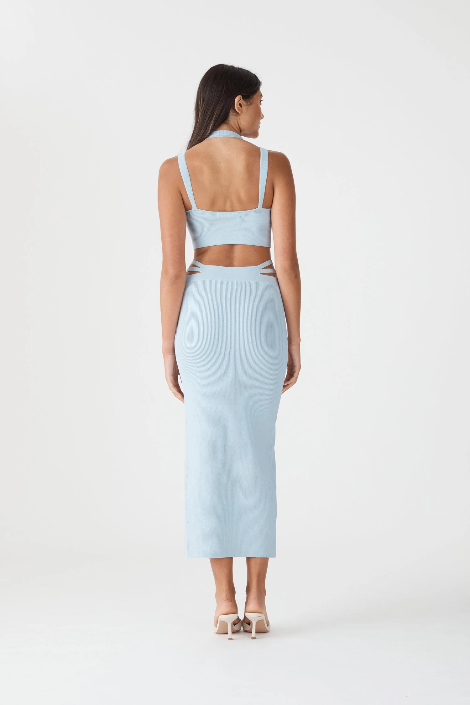 Refined, daring and chic. Subtle cut outs make the Vivien Skirt a statement piece. Style with the Toula Rib Strap Bralette for your next party moment.