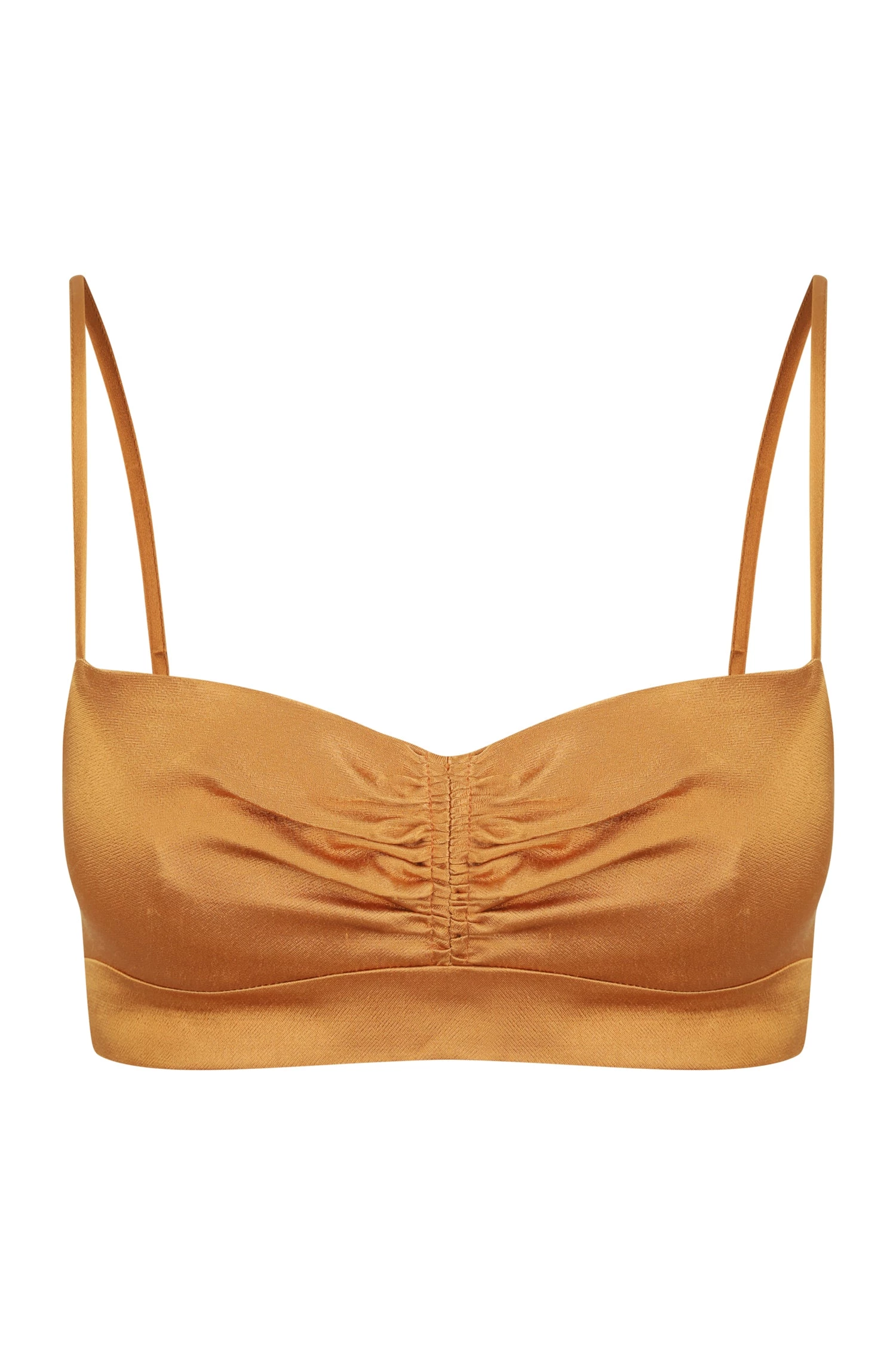 Open back bralette in a silk touch fabric with a luxurious sheen.