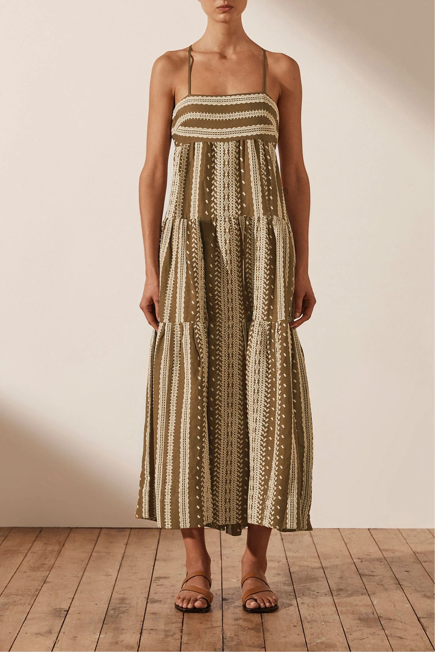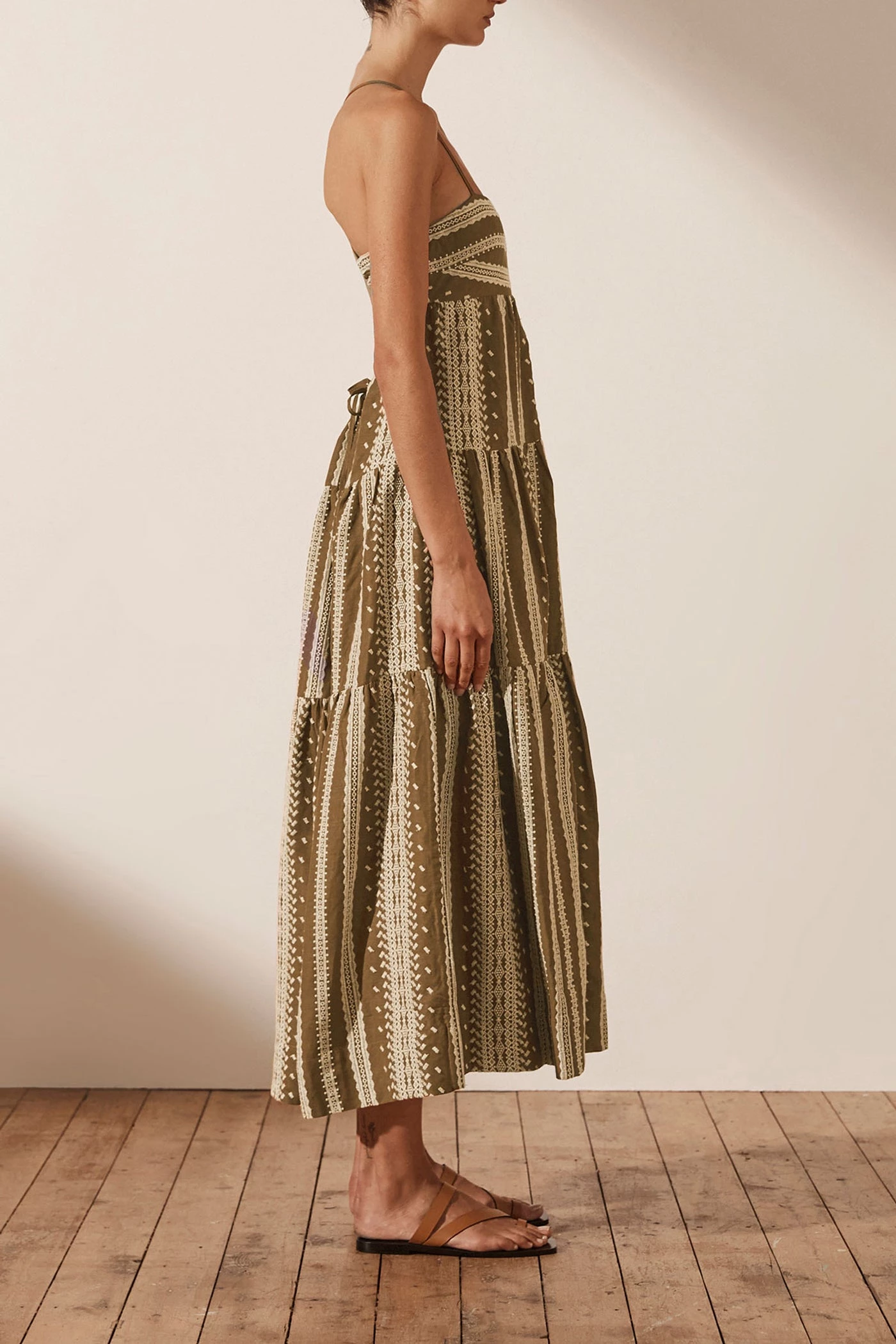 - Tiered midi length skirt