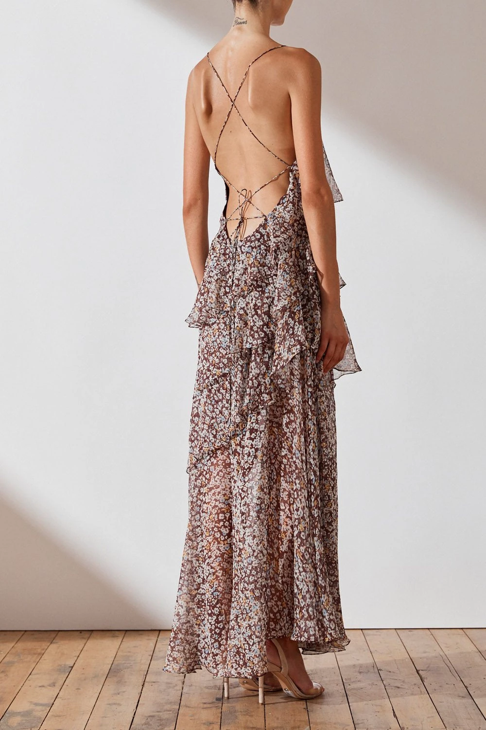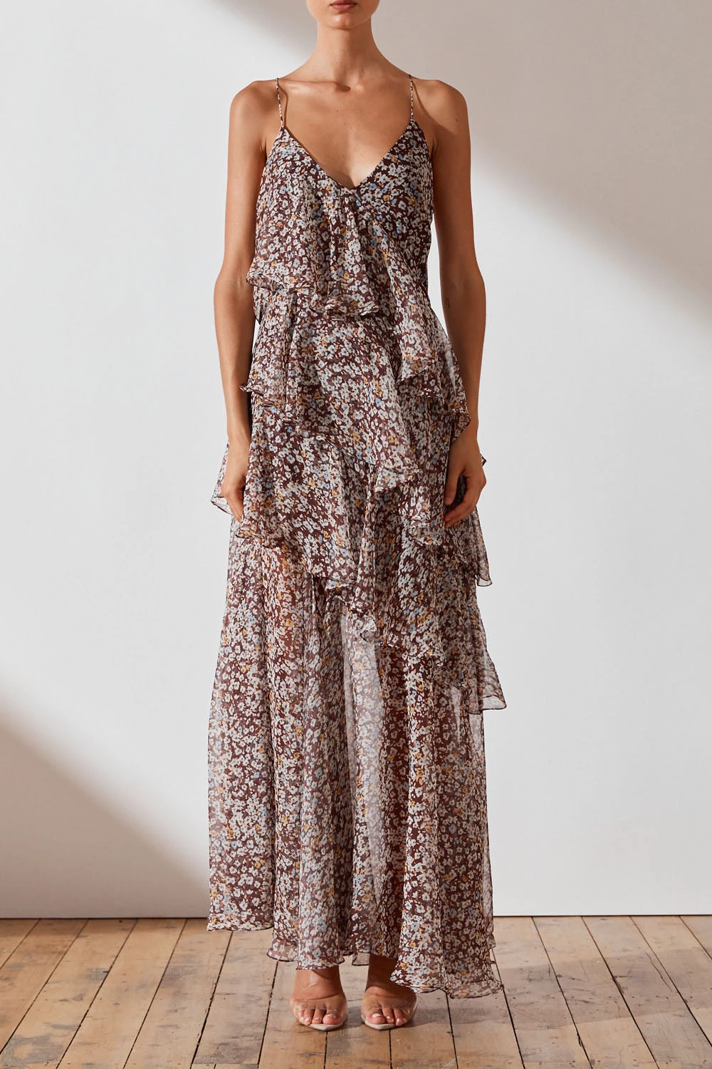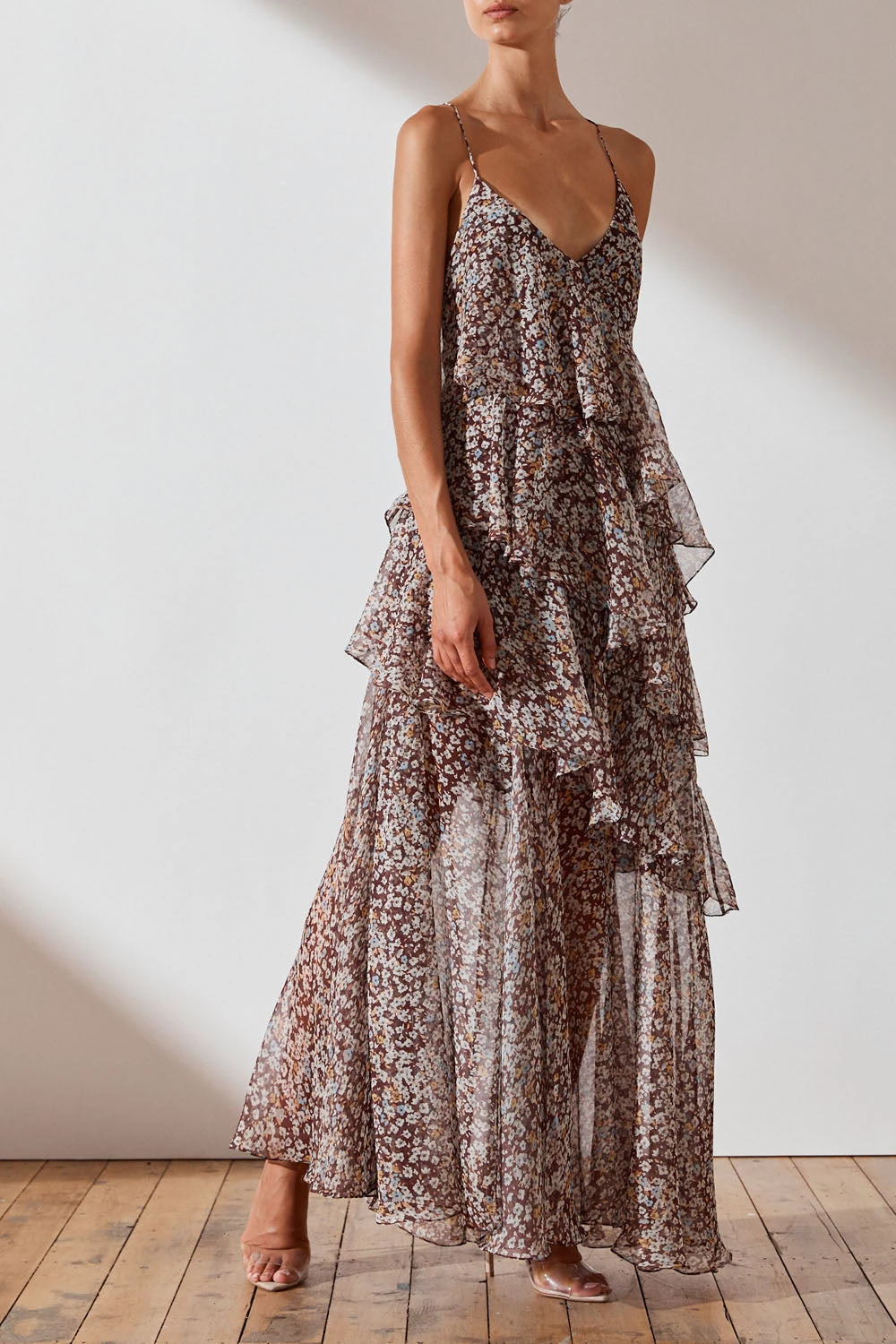 Shona Joy Garner Cross Back Tiered Maxi Dress