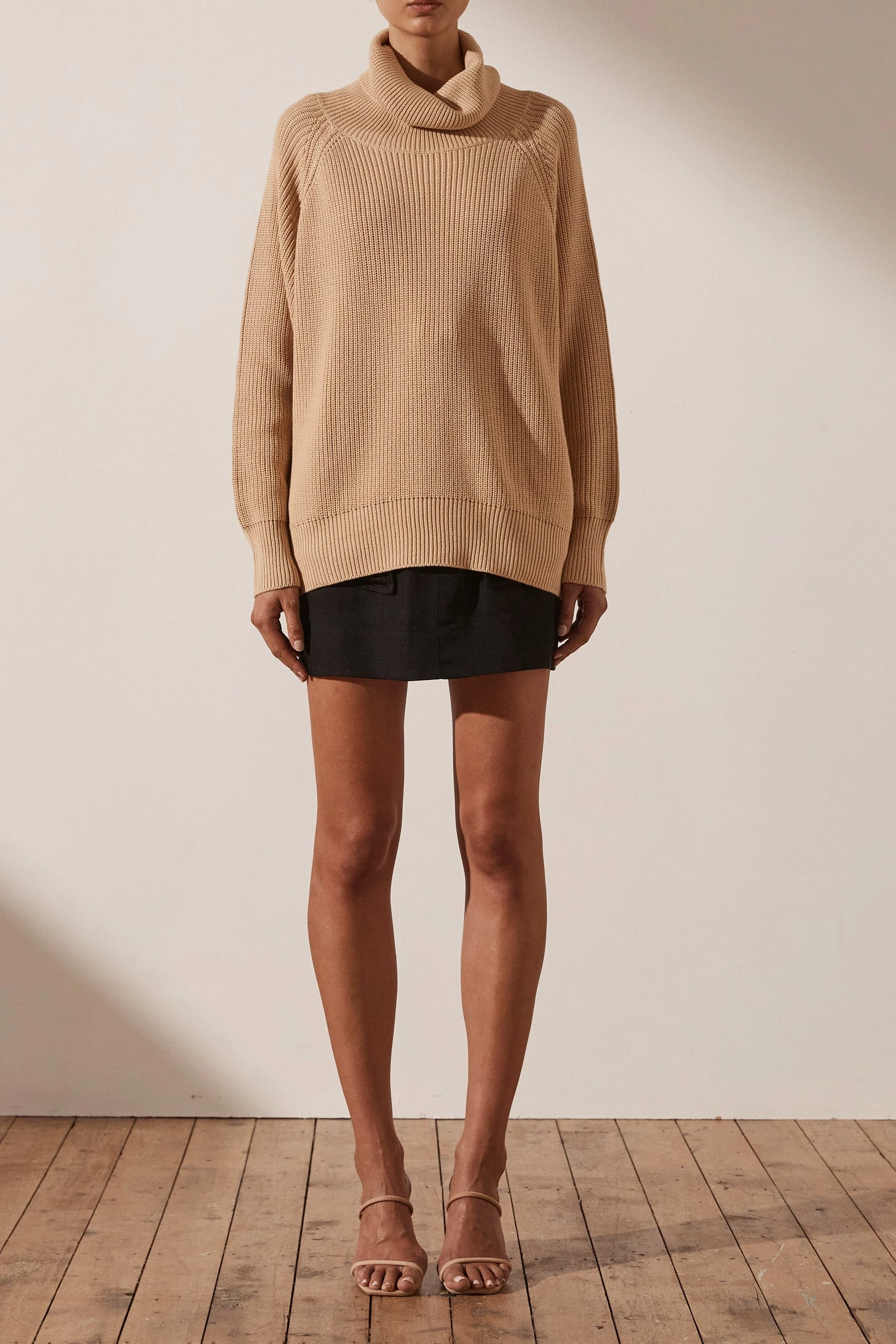 Shona Joy Madeline Roll Neck Jumper Peanut Butter