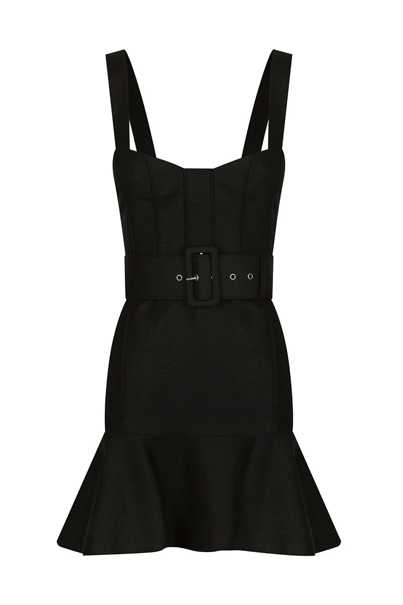 - Fitted through bodice and hips