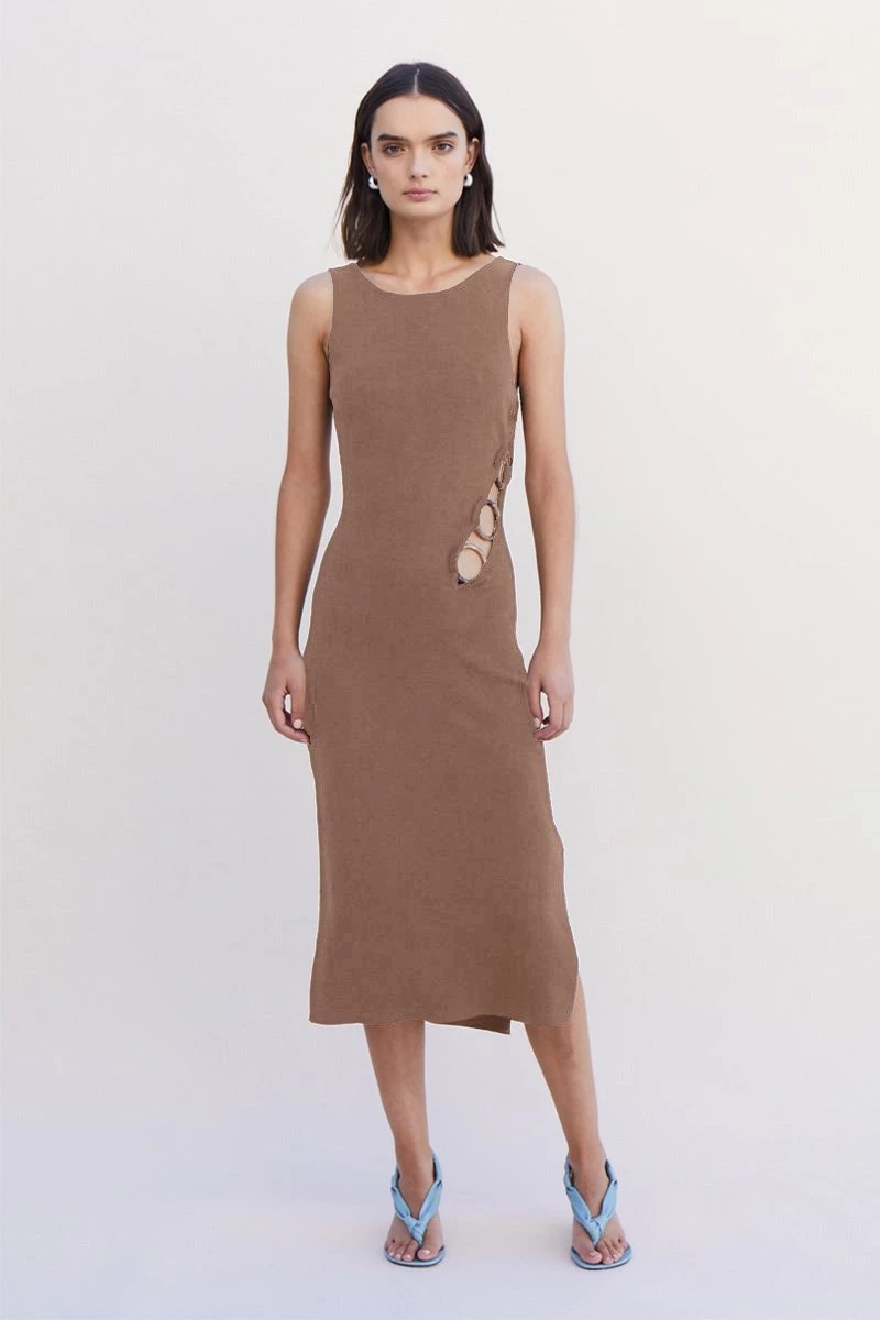 The Dylan Ring Side Knit Midi Dress is the perfect cocktail dress, elevated for the new season. Designed for a close fit, the Dylan Ring Side Knit Midi Dress features a high neck and unique ring cut-out detailing at its side. This dress was made perfect for your next event, paired with your favourite strappy heels.